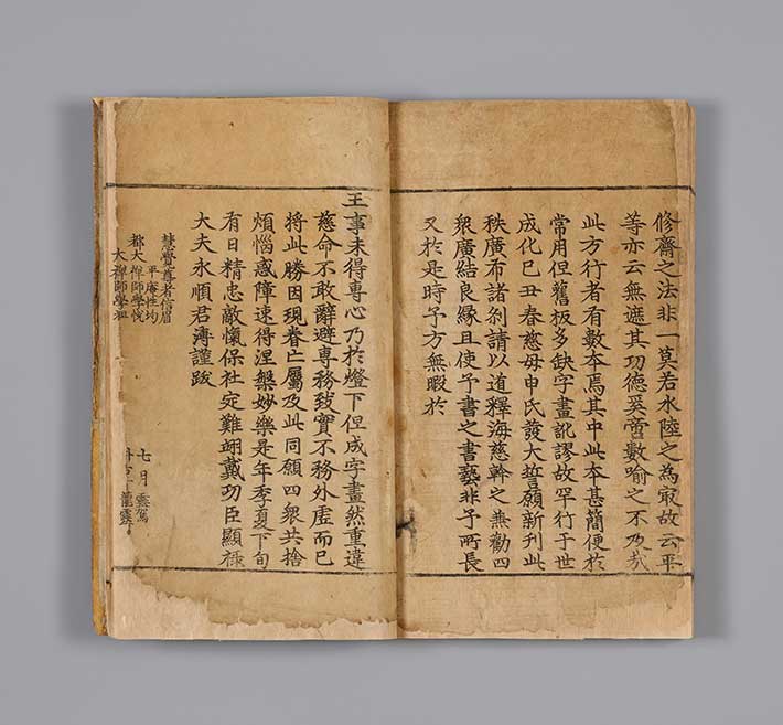 떠도는 영혼을 위로하는 불교 의식인 수륙재의 절차를 정리한 책입니다. 세종의 다섯째 아들 광평대군의 부인 신씨가 견성사見性寺에서 펴냈습니다. 신씨는 1444년 남편 광평대군이 세상을 떠난 후 머리를 깎고 승려가 되었고, 견성사를 세워 남편을 기렸습니다. 책에는 신씨의 법명인 ‘혜원慧圓’ 도장이 찍혀 있어, 신씨가 직접 가지고 있던 책으로 보입니다. 전시기간: 8월 5일 ~ 8월 31일